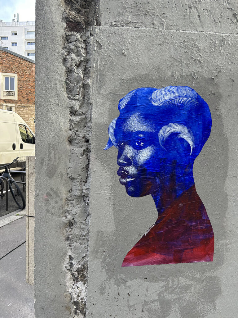 Peinture acrylique sur papier, oeuvre originale collée dans le quartier du Belvédère de Belleville à Paris en février 2026 / © Sébastien Bouchard